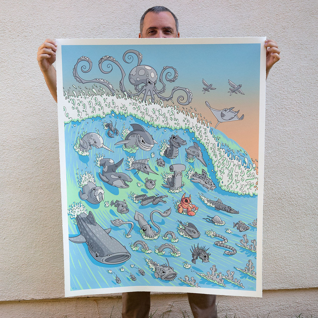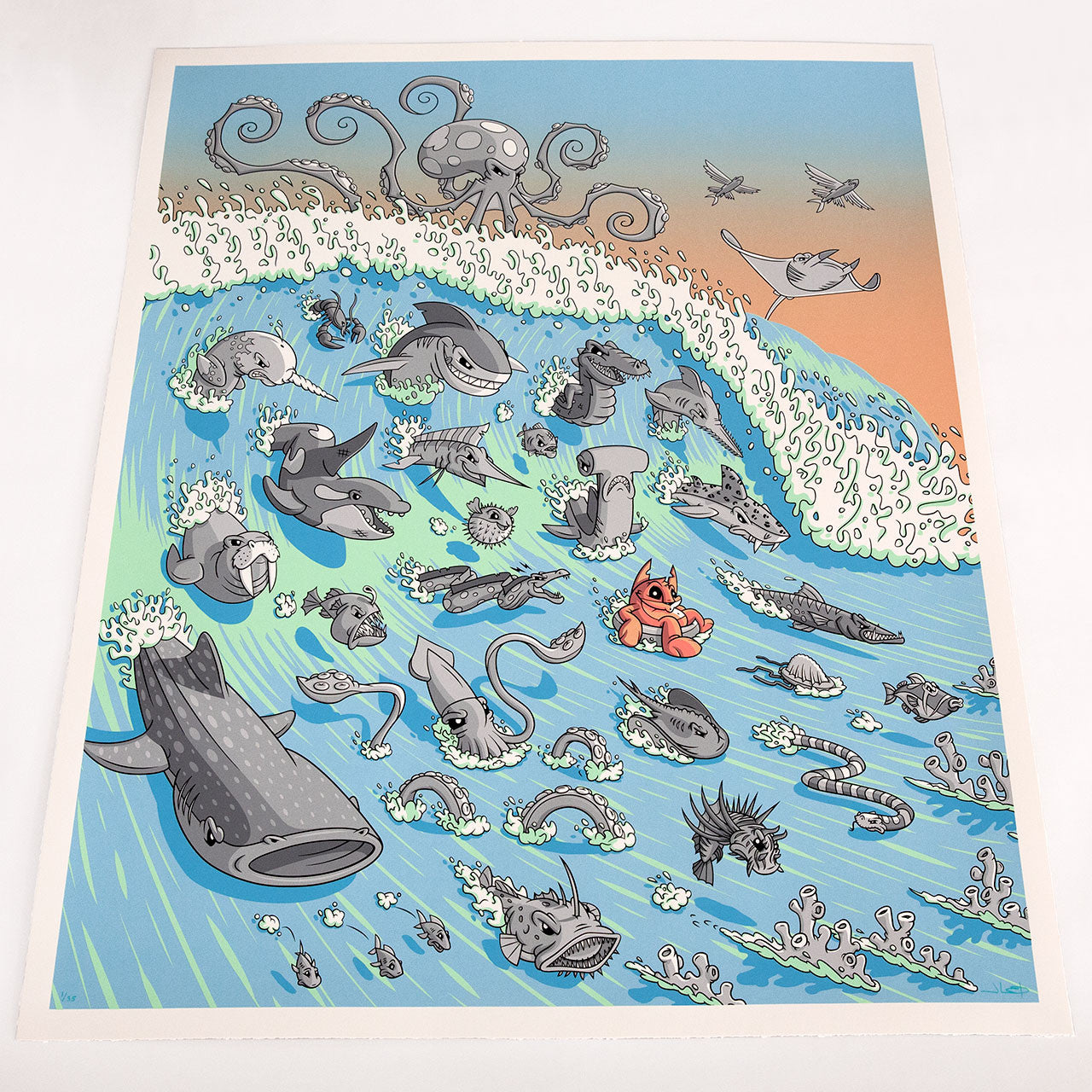 35" x 44" Hand-pulled serigraph print on coventry rag paper. Deckled edges, 12 colors. Signed, numbered, and watermarked de-bossed for authenticity. Limited edition of 35. Available starting Friday, Nov. 16.